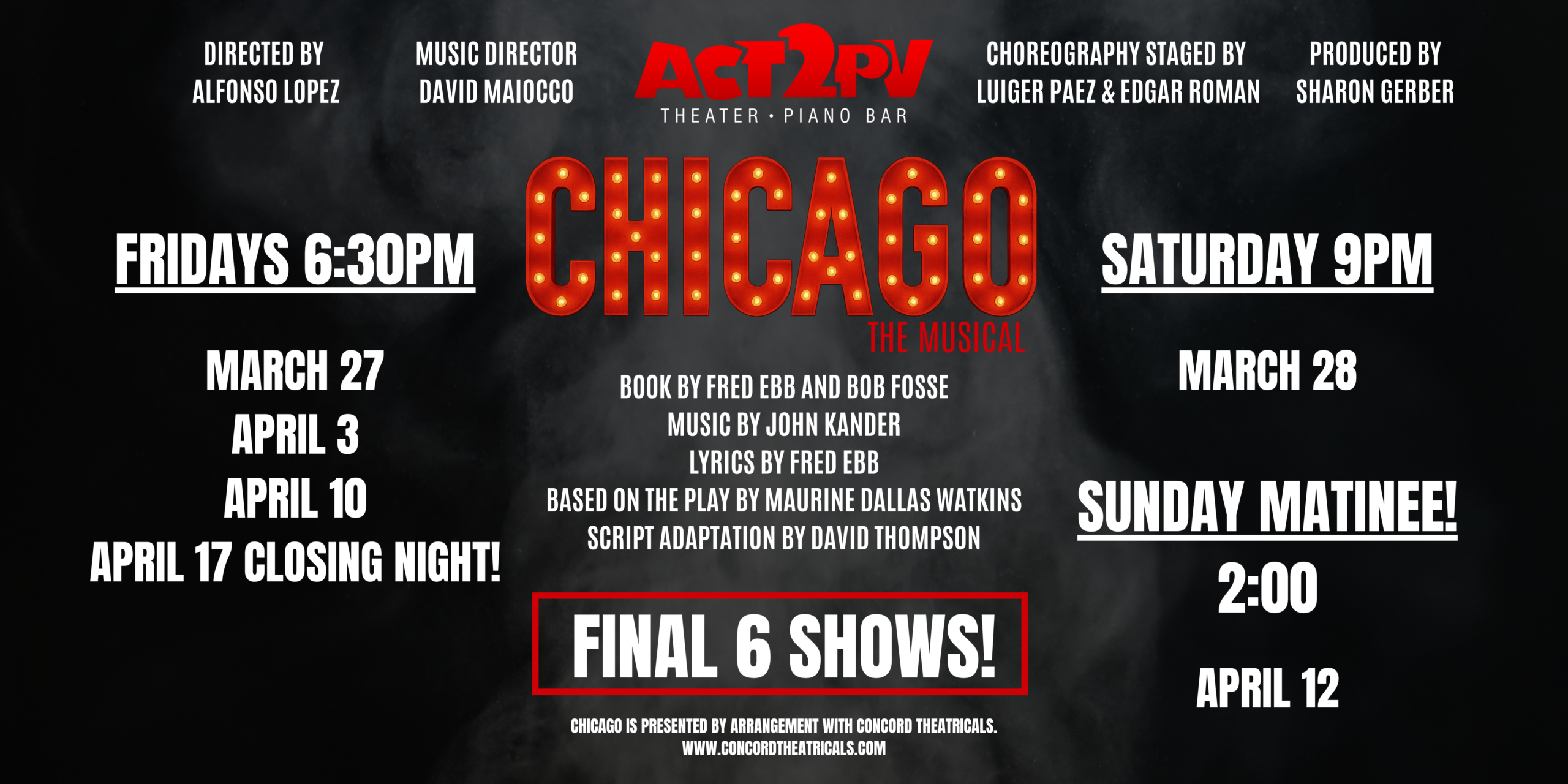 🎭 Don’t blink—don’t even breathe—because missing Chicago at Act2PV this time around is simply unthinkable. It’s Broadway. It’s legendary. It’s EVERYTHING.